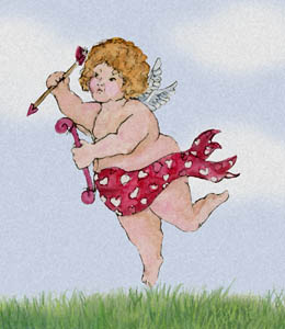 Cupid enjoys an extra-large double mocha cappuccino and a chocolate croissant prior to taking flight on his annual quest to spread romance across the cosmos.